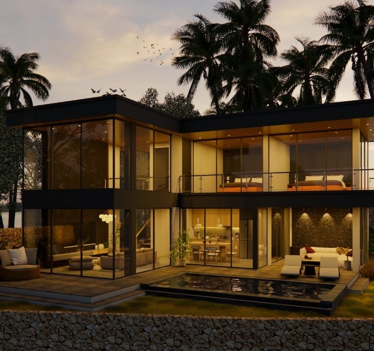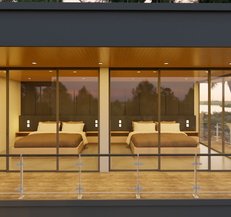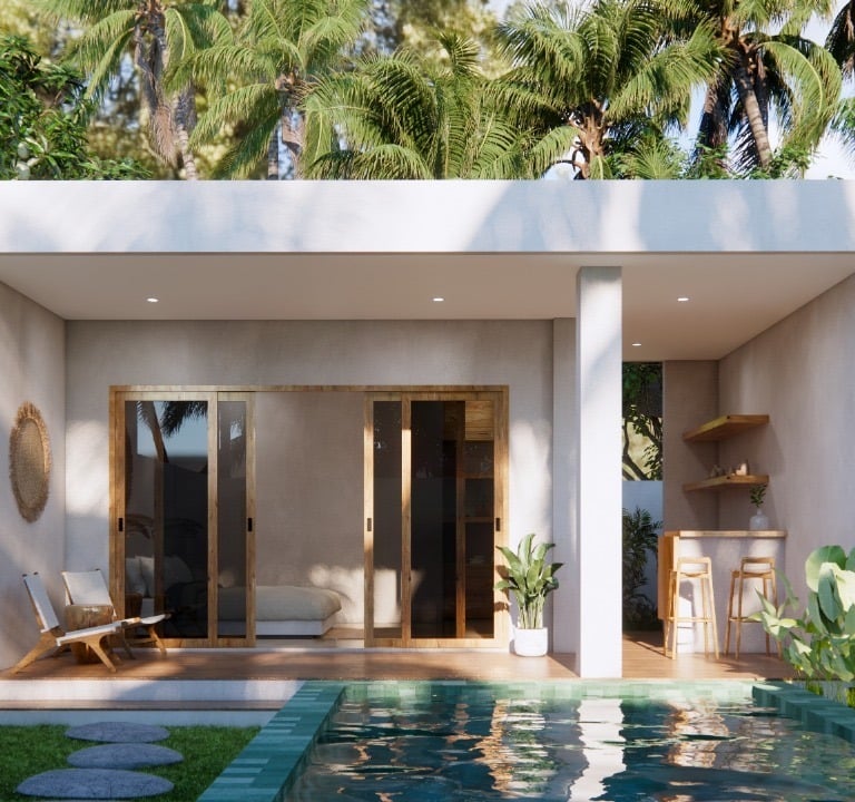 This 3 villas feature one bedroom each villa , one swimming pool, and a beautifully decorated bathroom in each villa.